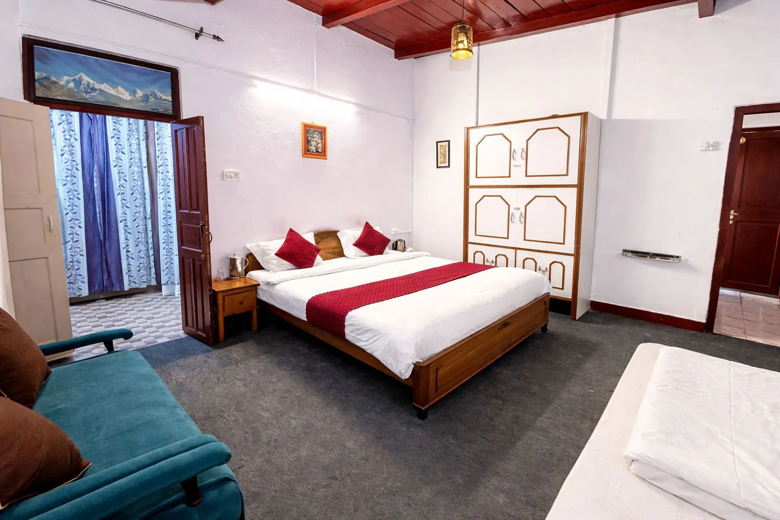 The Elegant Room offers a perfect blend of comfort and style for a relaxing stay. Located on the ground floor, it features a private balcony where guests can unwind and enjoy the peaceful surroundings. Designed with modern interiors and a spacious king-size bed, it provides a warm and inviting ambiance, making it ideal for couples and small families visiting Nainital.