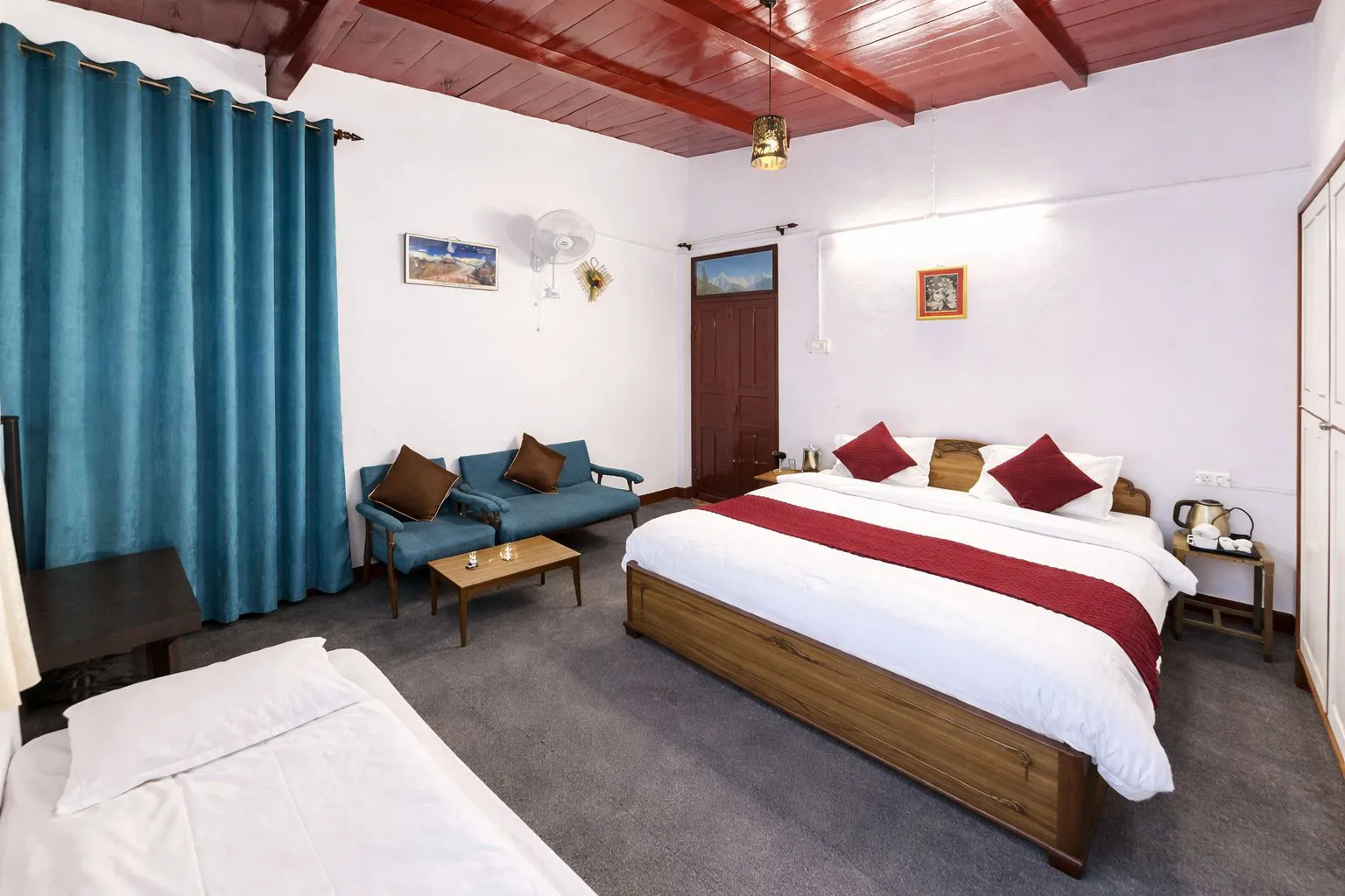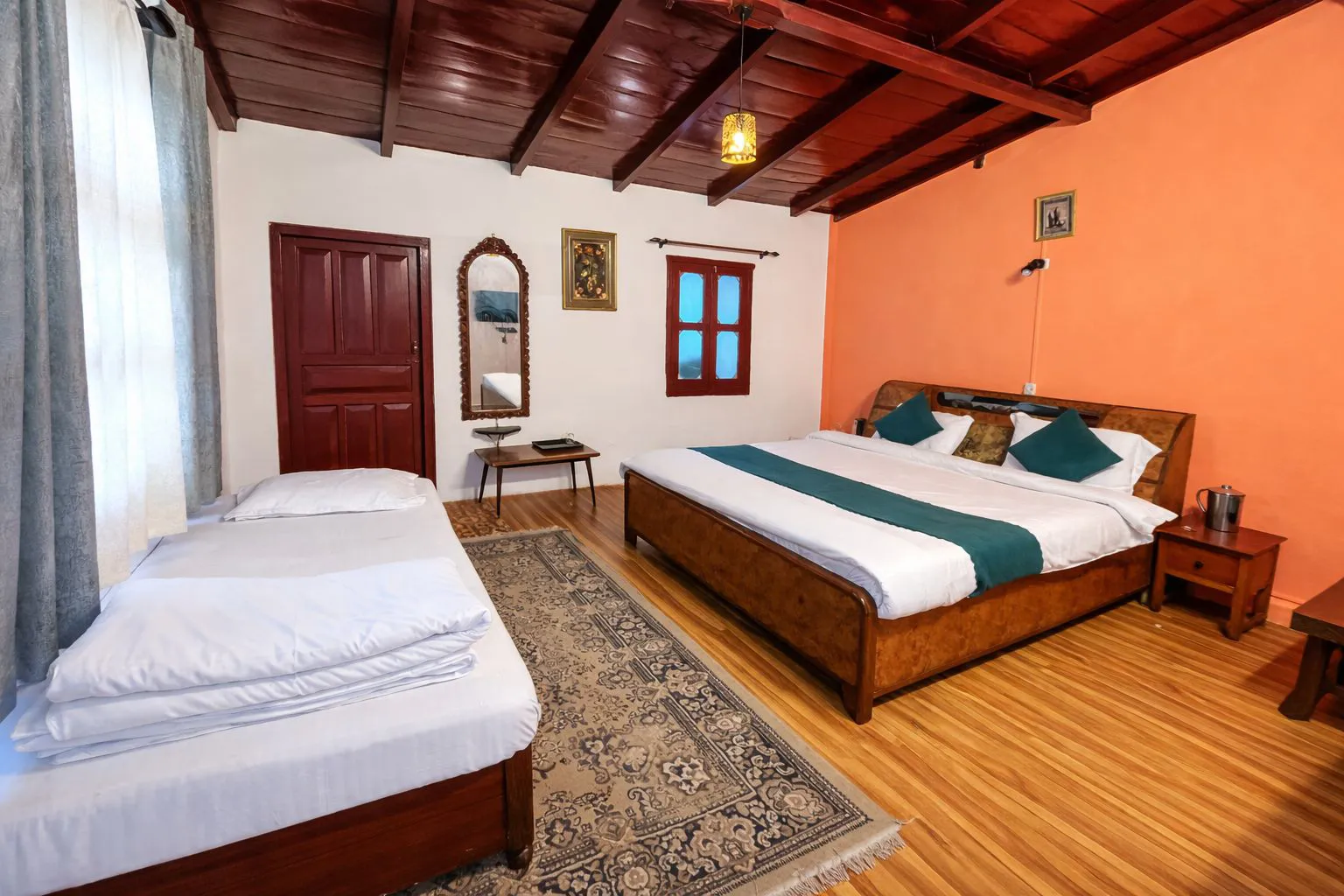 The Heritage Room (3BHK Villa) offers a spacious and comfortable stay, ideal for families and groups. Located on the first floor, it features three well-furnished bedrooms, a cozy living room with a sofa set, and a common kitchen for added convenience. Guests can also enjoy an open rooftop seating area, perfect for relaxing. With its warm ambiance and peaceful surroundings in Nainital, it ensures a pleasant and memorable stay.